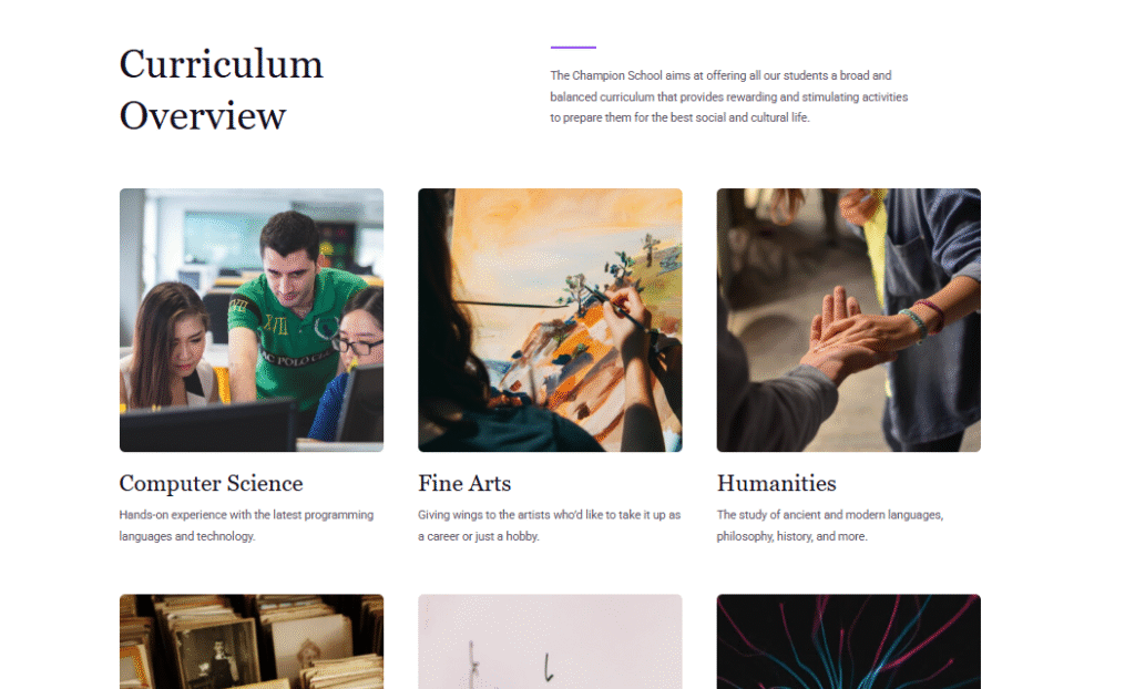 • Custom WordPress theme tailored to the school’s brand and mission.